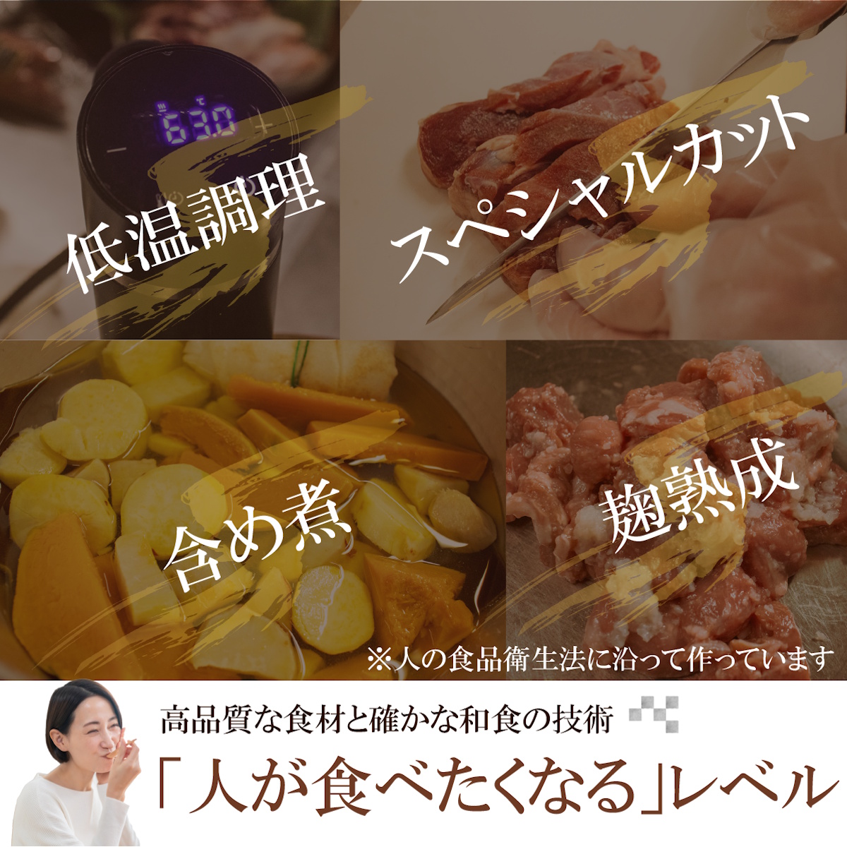 「噛み噛み」卒業へ: 麹熟成による高い消化性と、良質なオイルで皮膚をケア。
