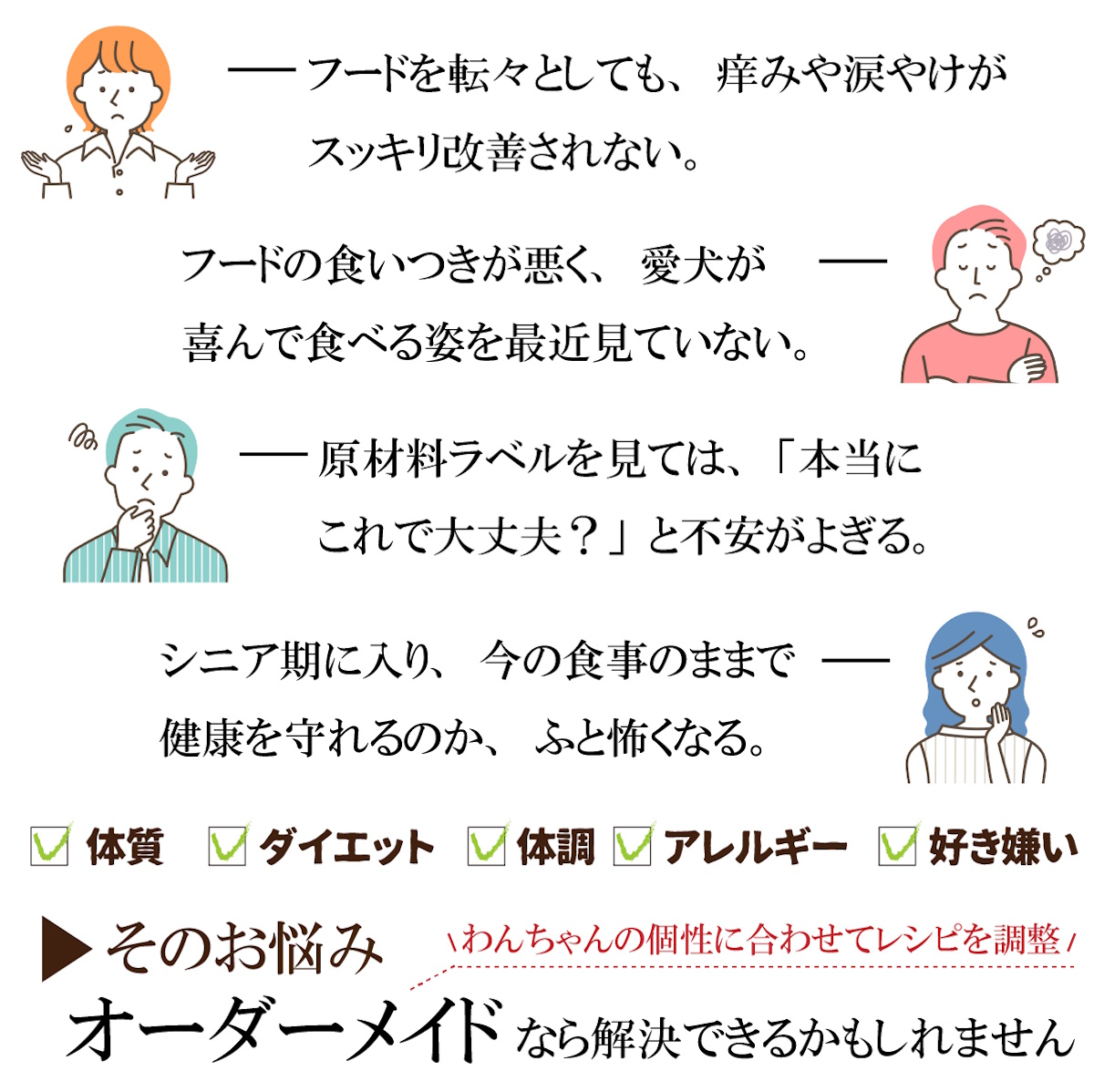 毎日がんばって飲んでいるサプリメントを、これからは「美味しいごはん」としてペロリと食べられるように。ゆめちゃんの体調と好みに合わせた専用設計です。
